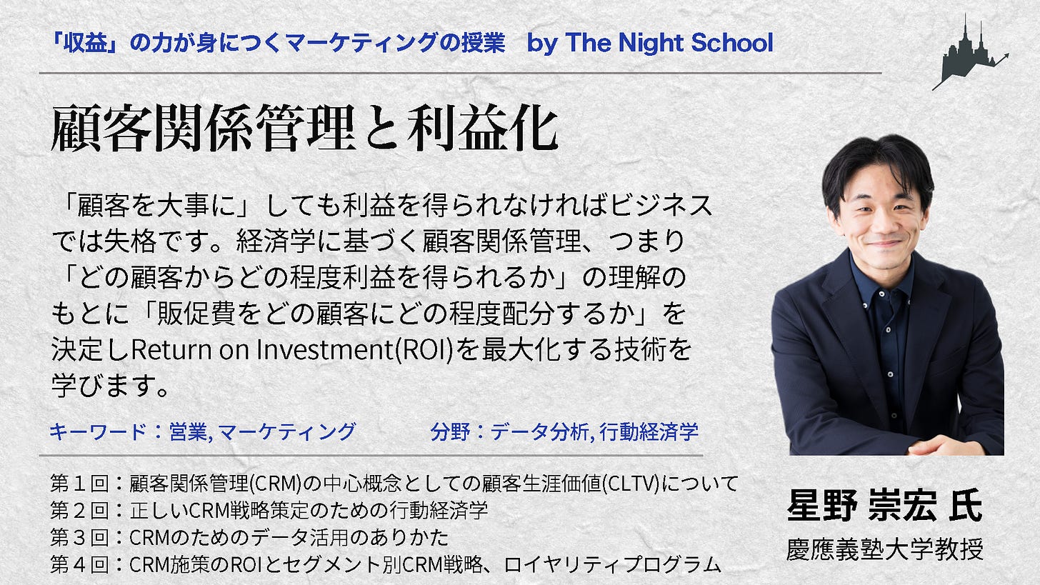 今回ご紹介するのは、「顧客関係管理と利益化(慶応義塾大学教授・星野崇宏)」です。