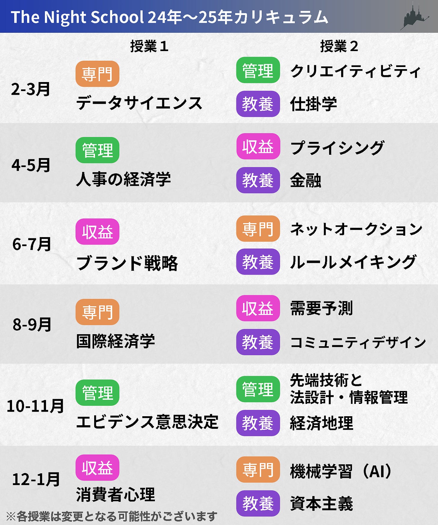 ビジネス特化の年間カリキュラム